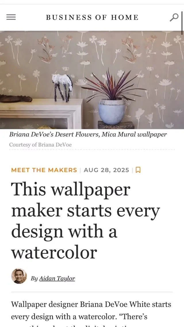 Offered on wallpaper, fabric & pillows, Hues of the High Desert, pays homage to the enchanting beauty of the high desert landscape of Santa Fe, New Mexico, a landscape of sagebrush, tumbleweed, & Apache plume, of dust, flowering cactus, & vast blue skies.