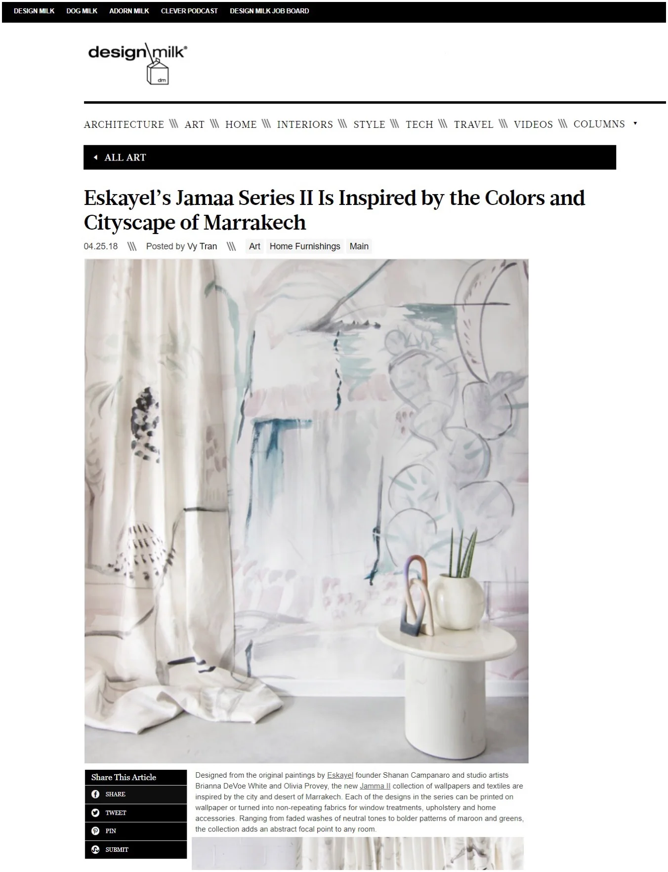 Sultana - Duomo mural wallpaper made in collaboration with Eskayel featured on Design Milk, April 2018.